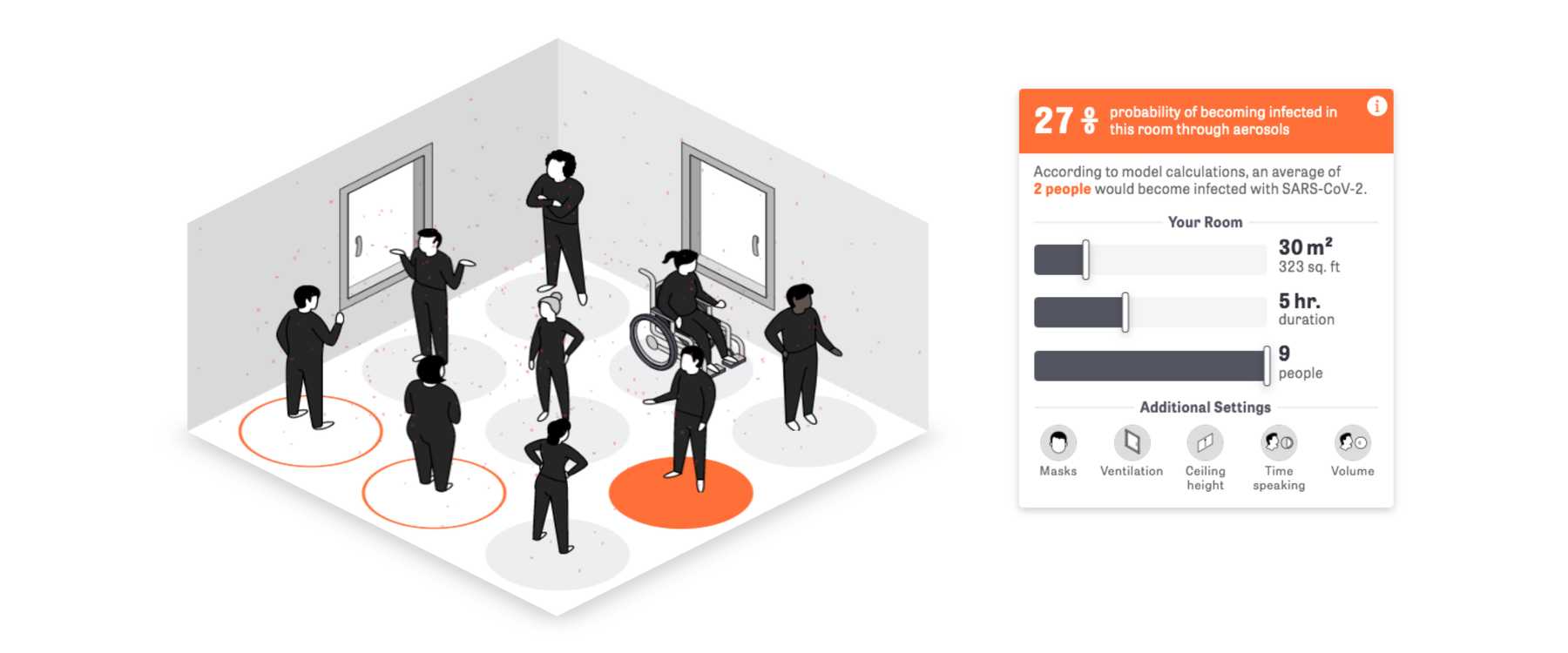 In order to help people to get an idea of the individual risk, the interactive team of Zeit Online wanted to create a tool for calculating the risk of a transmission indoors.